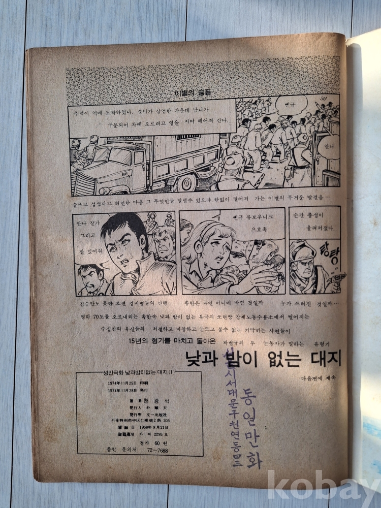 낮과밤이 없는 대지 - 천광석(1974년발행)