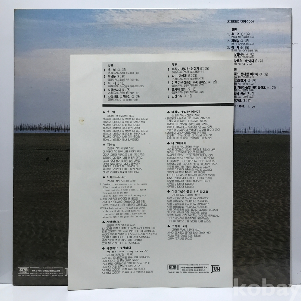 LP 86,050-12 88 전영록 - 추억/ 저녁놀 _ 자켓 EX+ 알판 EX+ 88 년 국내반