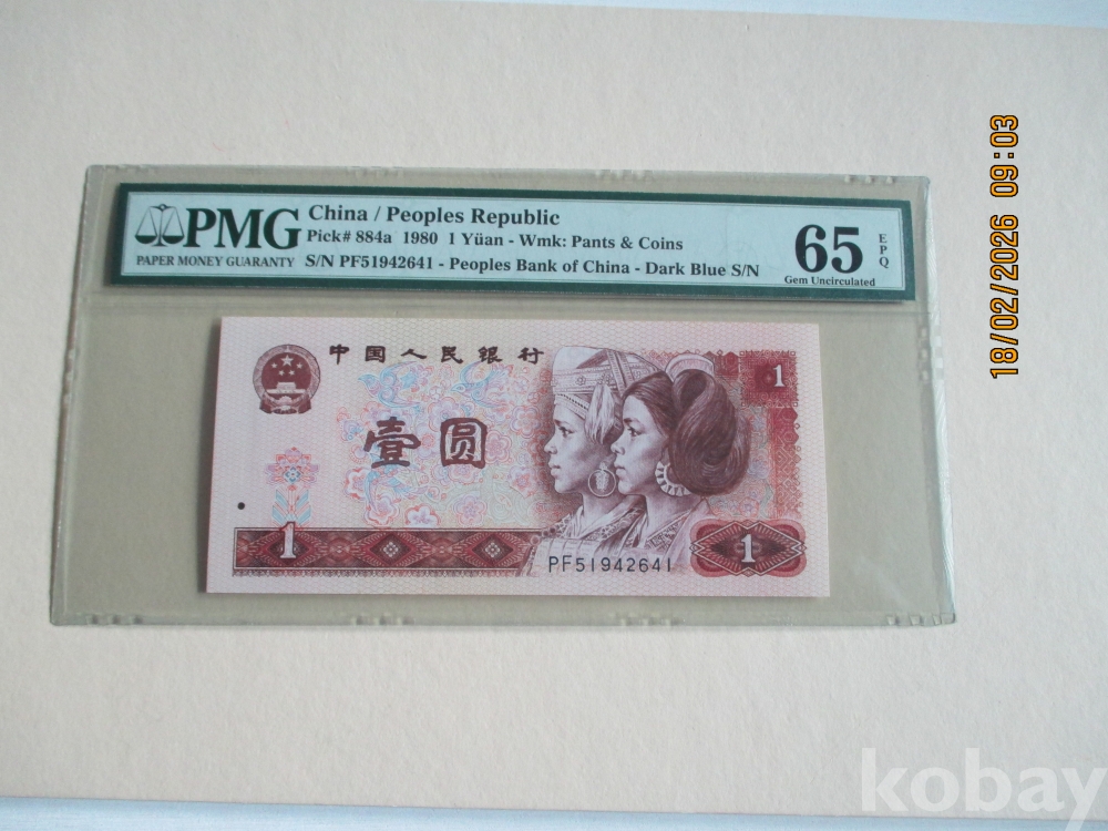 중국 1980년 1위안 PMG 65 등급 저렴함 반품사양