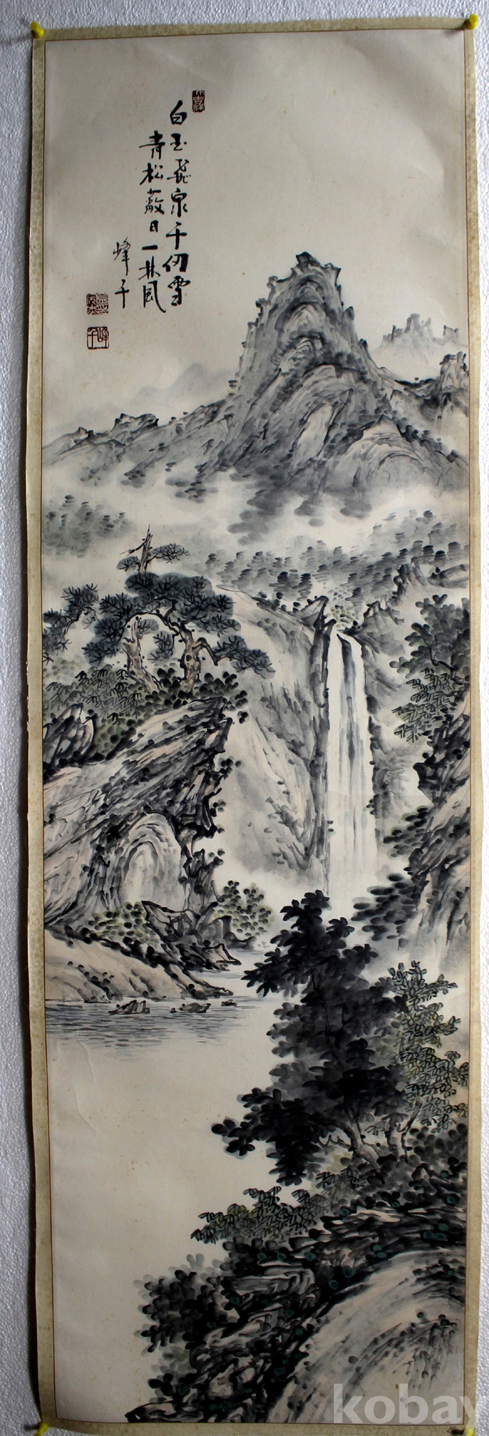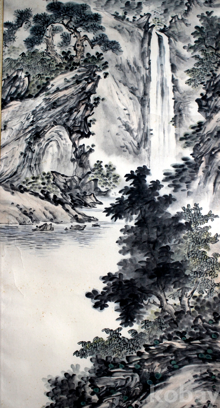 峰千(봉천) 김완걸의 작품 (3) - 폭포가 있는 강가의 여름풍경