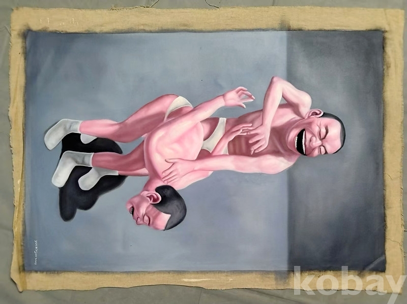 중국 현대미술 F4 악민군(岳敏君) 2009년작 캔버스유화 인물시리즈 2