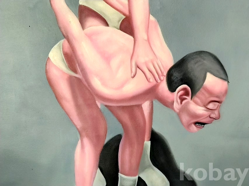 岳敏君 ,敏君과 영문이름 yueminjun을 사용하고 있으며, 본 작품에서 보시다시피