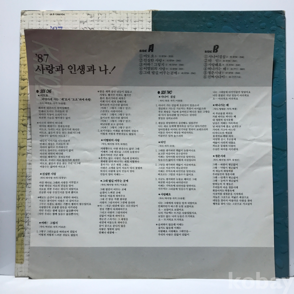 LP 86,000-72 조용필 9집 - 사랑과 인생과 나 자켓 EX 알판 EX+ 87 년 국내반