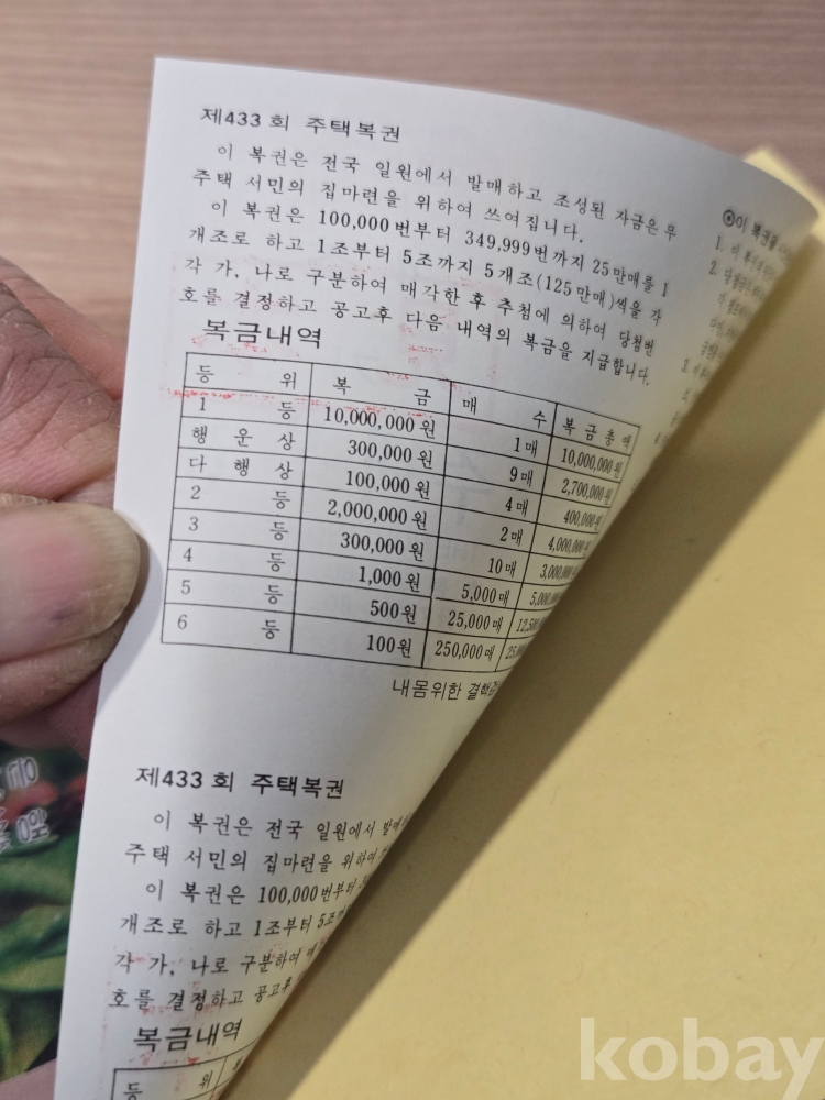 <투킴스> 희귀품, 1980년 433회 주택복권 복식 견본권, 당첨번호미표기 에러권