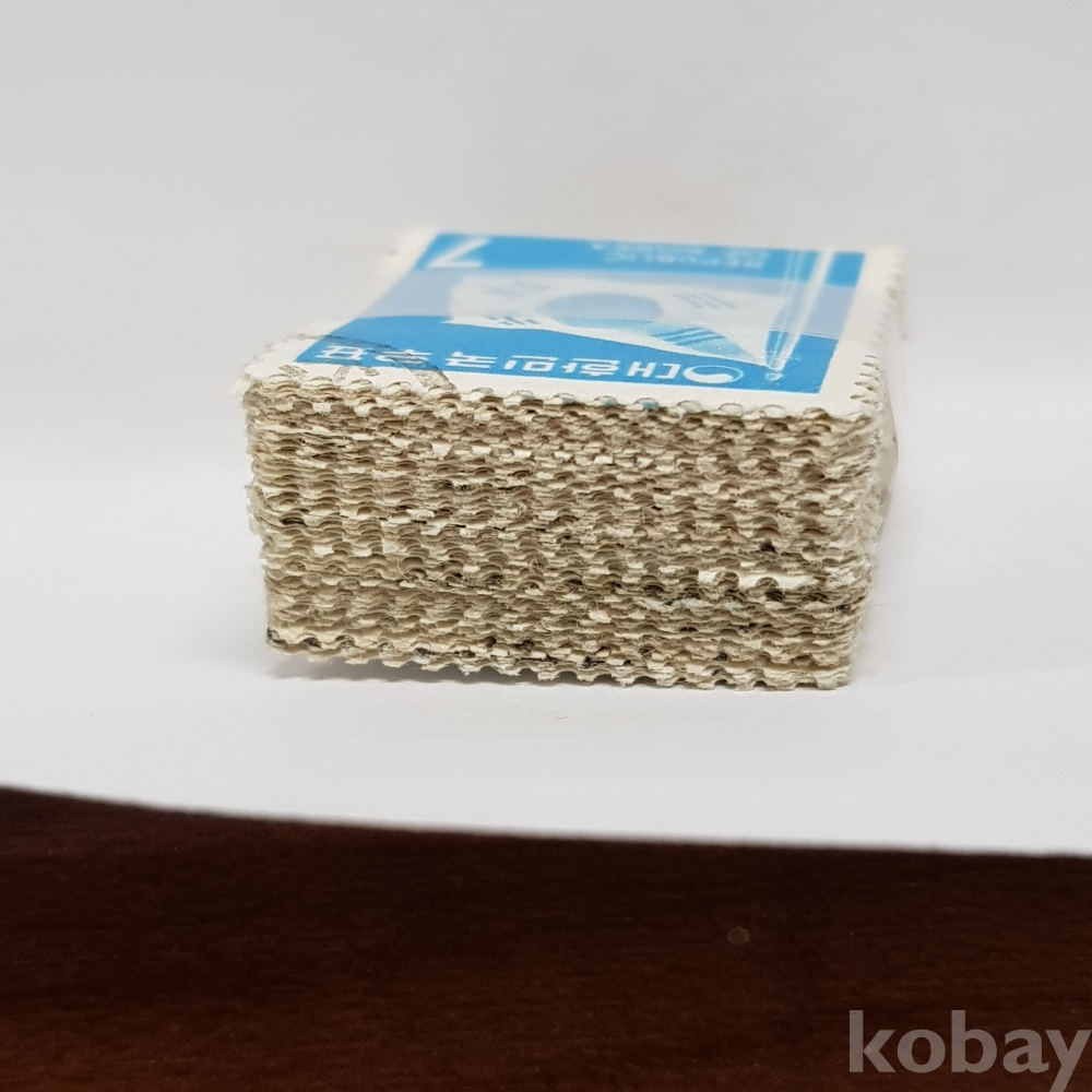 - 1960년대 제 1차 그라비아 7원 태극기 일부인 미확인 사용제 우표 약 100매 묶음