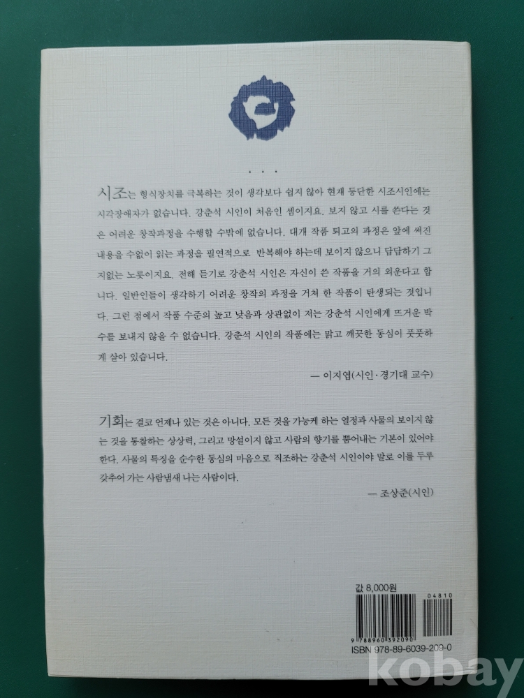 시각장애인이 쓴 최초의 시조집. 보존 상태 상급.