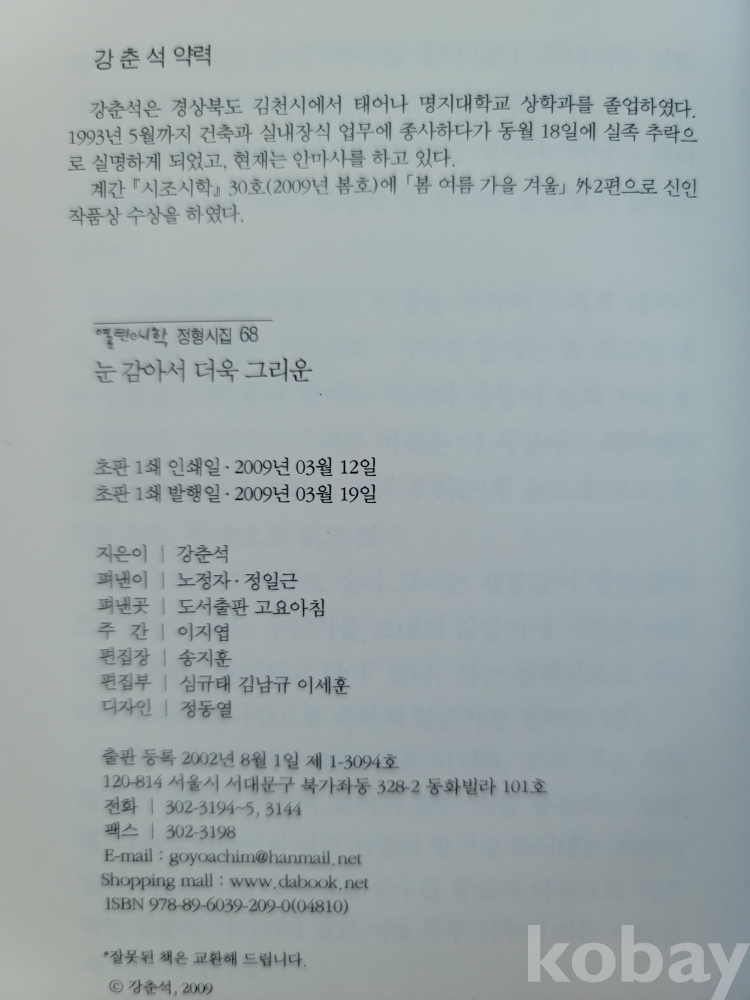 강춘석(경상북도 김천: 1949) 처녀시집.