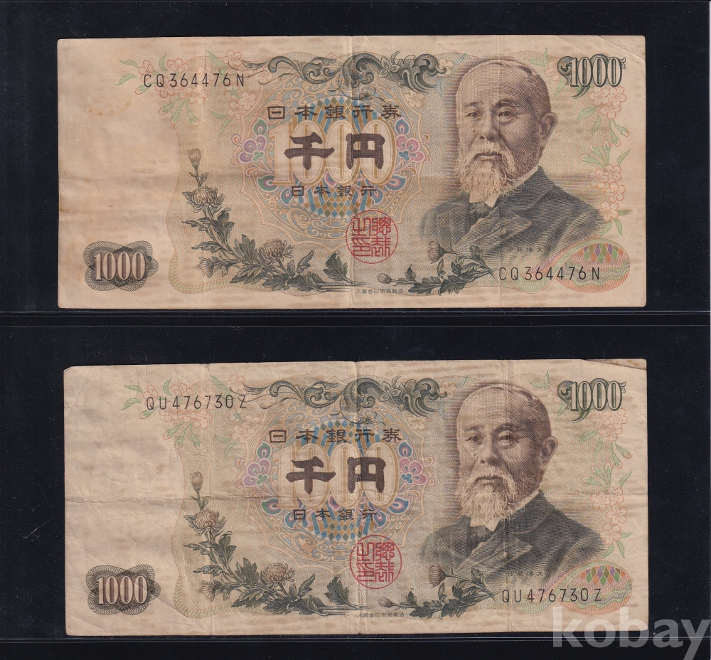 - 일본에서 소화 38년(1963년) 발행개시된 1,000엔권 지폐 입니다.
