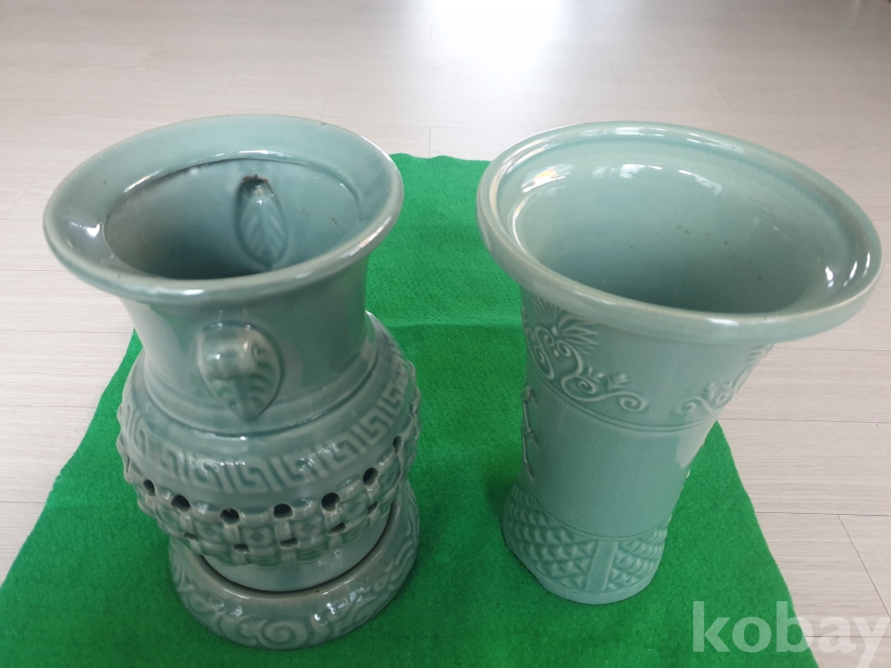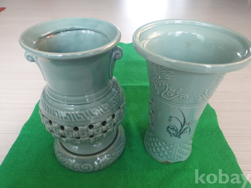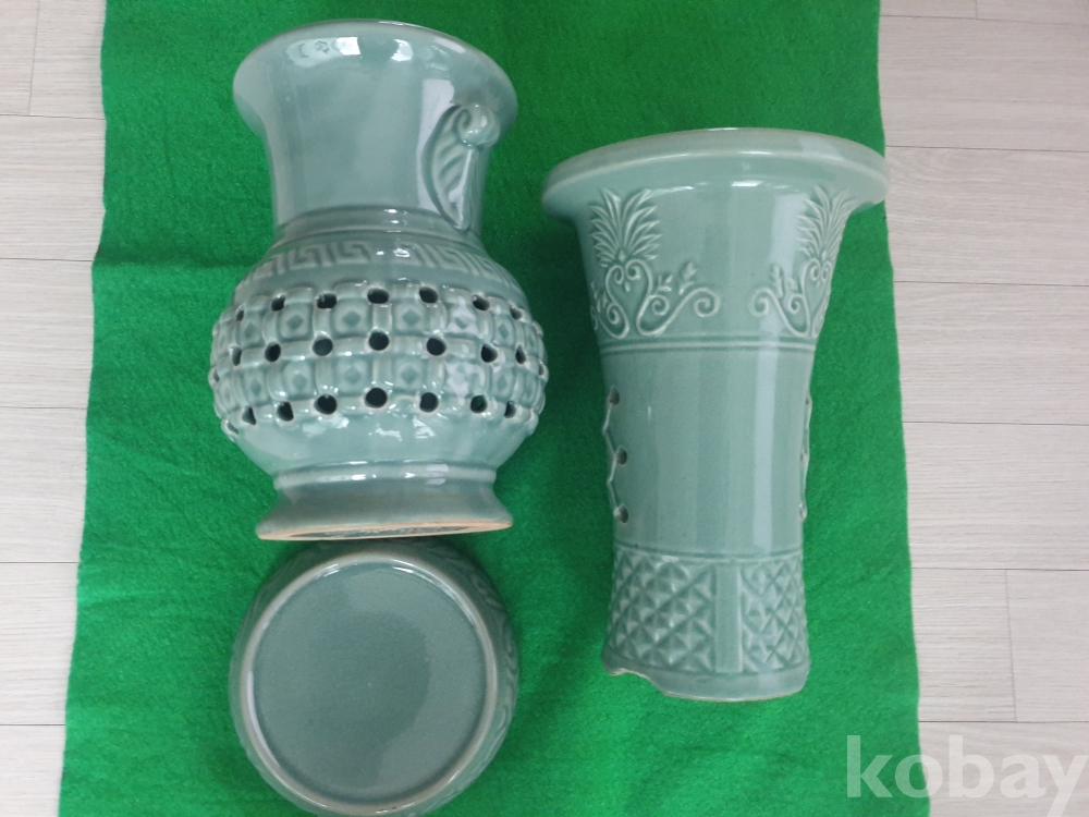 청자 양각 화분 1, 청자 투각 화분 1개