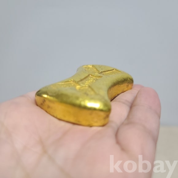 다양한 한자와 문양이 압인된 금자 덩어리 입니다 화폐가 발달하기전 마제은이나 금자 덩어리로 화폐를 대용했다고 합니다. 진품 금자 덩어리는 아닌것으로 보입니다 재미있는 화폐 소품으로 보입니다. 속이 꽉차있어 상당히 묵직합니다.수집하셔서 좋은 기운 많이 받으세요.