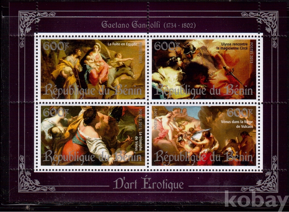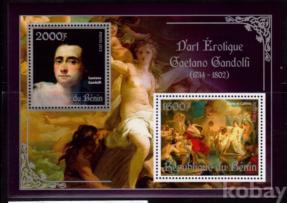 (누드명화) 베냉 2013 가에타노 간돌피 누드화 2 s/s(silver) MNH