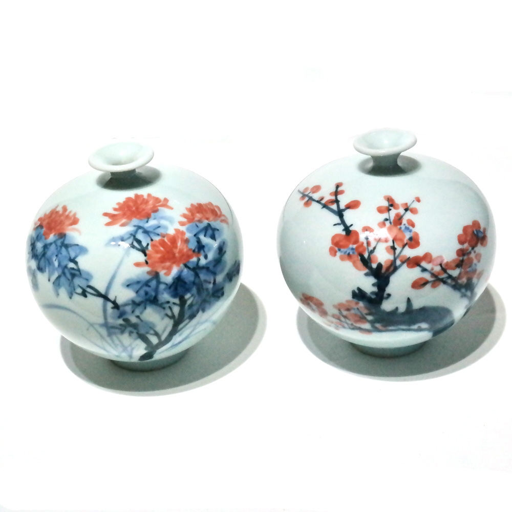 자그마한 사이즈의 도자기 화병 2점 입니다.