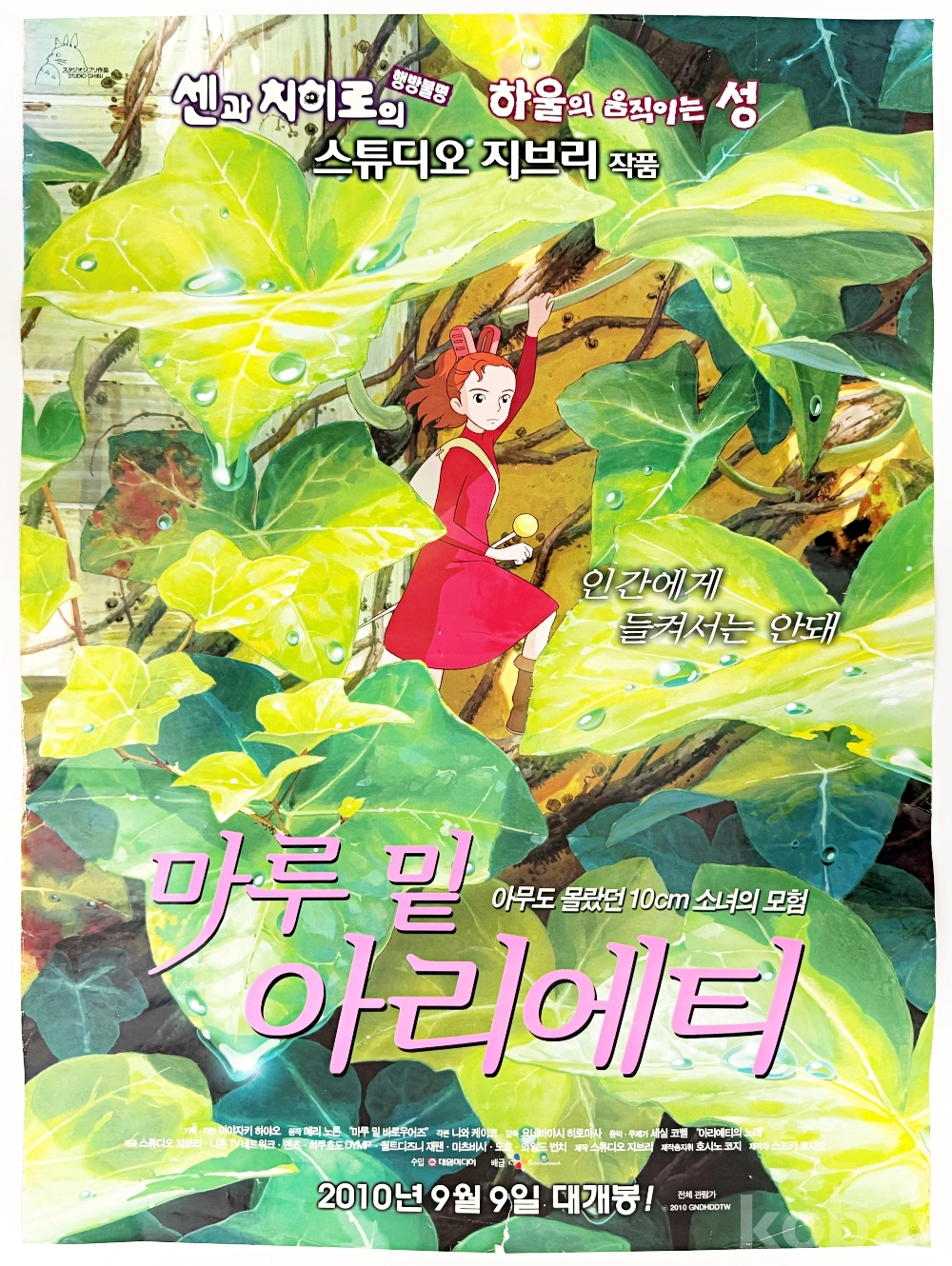 상품 설명 | 스튜디오 지브리 애니메이션 영화 '마루 밑 아리에티'의 국내 개봉 포스터이다. 하단 중앙 찢어짐 있음. | ||