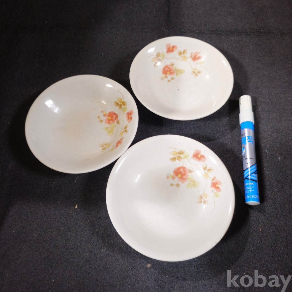 (((빈티지접시))) 오래전 꽃그림이 이쁜 빈티지 행남사 접시 3개 (지름 13.5 cm)