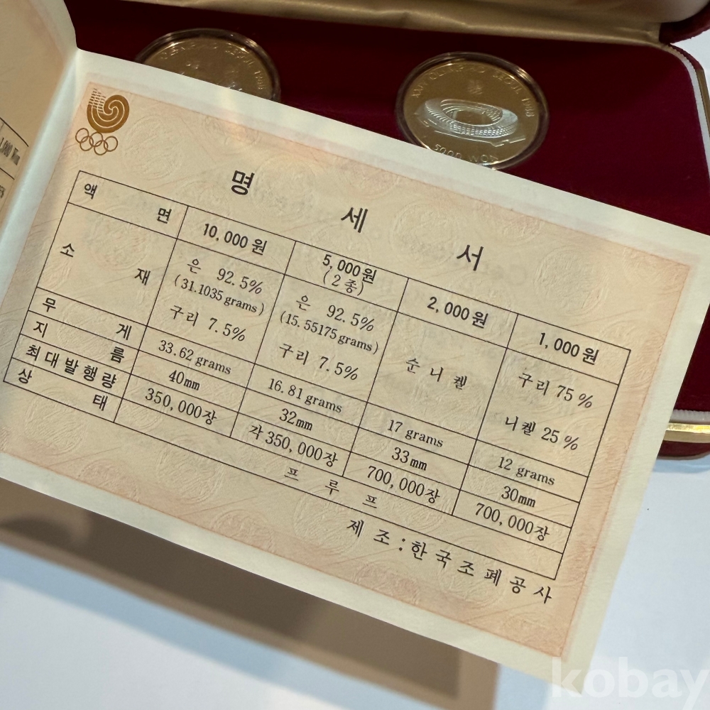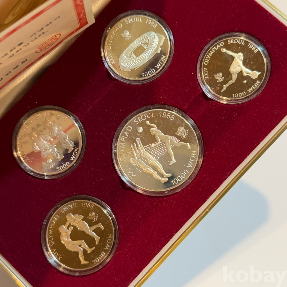제24회 서울올림픽대회 기념법화/ 은화/ 주화 5종 (유도, 배구, 테니스, 제기차기, 경기장)