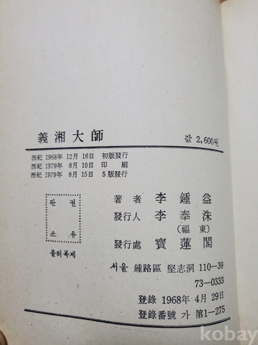 1. 의상대사, 이종익, 보련각, 1979년, 520쪽, 역사소설, 상태 상, 사진 참조