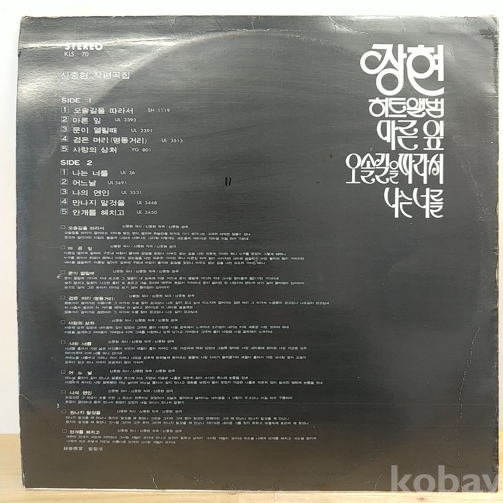 | 자켓상태 | EX : 약간의 마모, 모서리 찢김 존재 | 음반상태 | NM : 개봉했으나 미사용급, 스크래치 없음 | 발매정보 | 초반 | 가사지여부 | 무 |