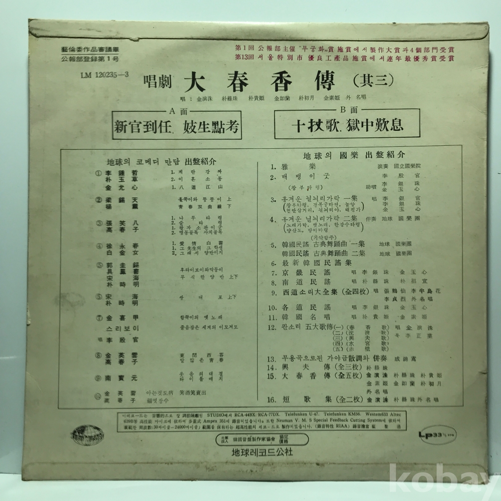 LP 83,840-59 판소리 춘향전 전집 其3 . 자켓 EX 알판 EX 국내반