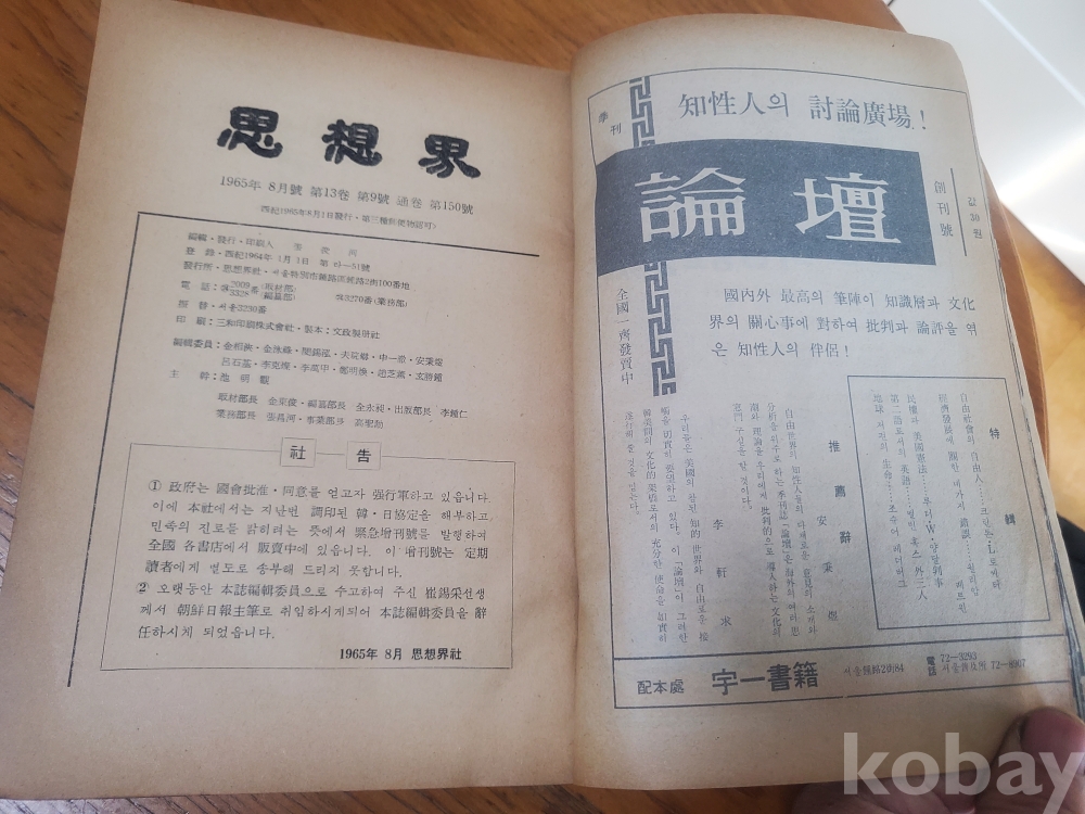 1. 사상계 통권 150호, 사상계사, 1965년, 424쪽, 상태 상, 사진 참조