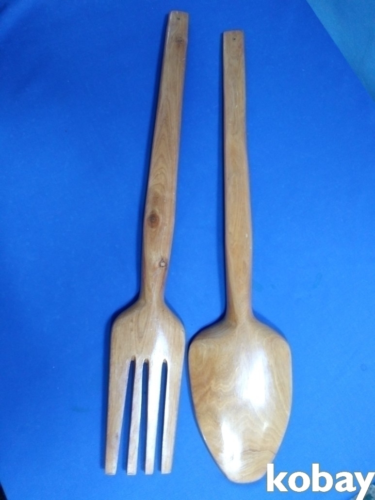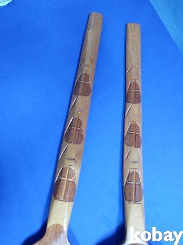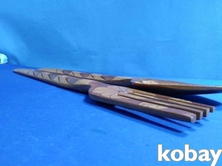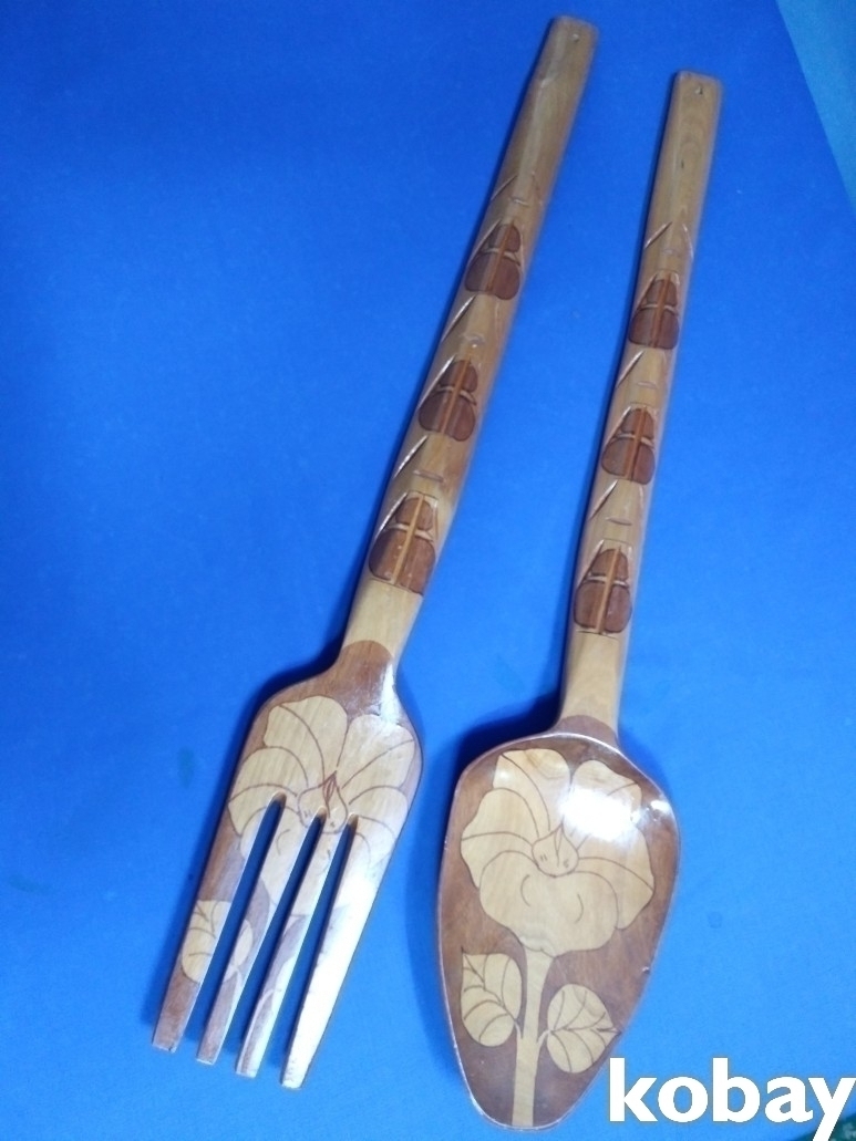 꽃 문양이 있는 나무로 만든 수저와 포크 입니다.