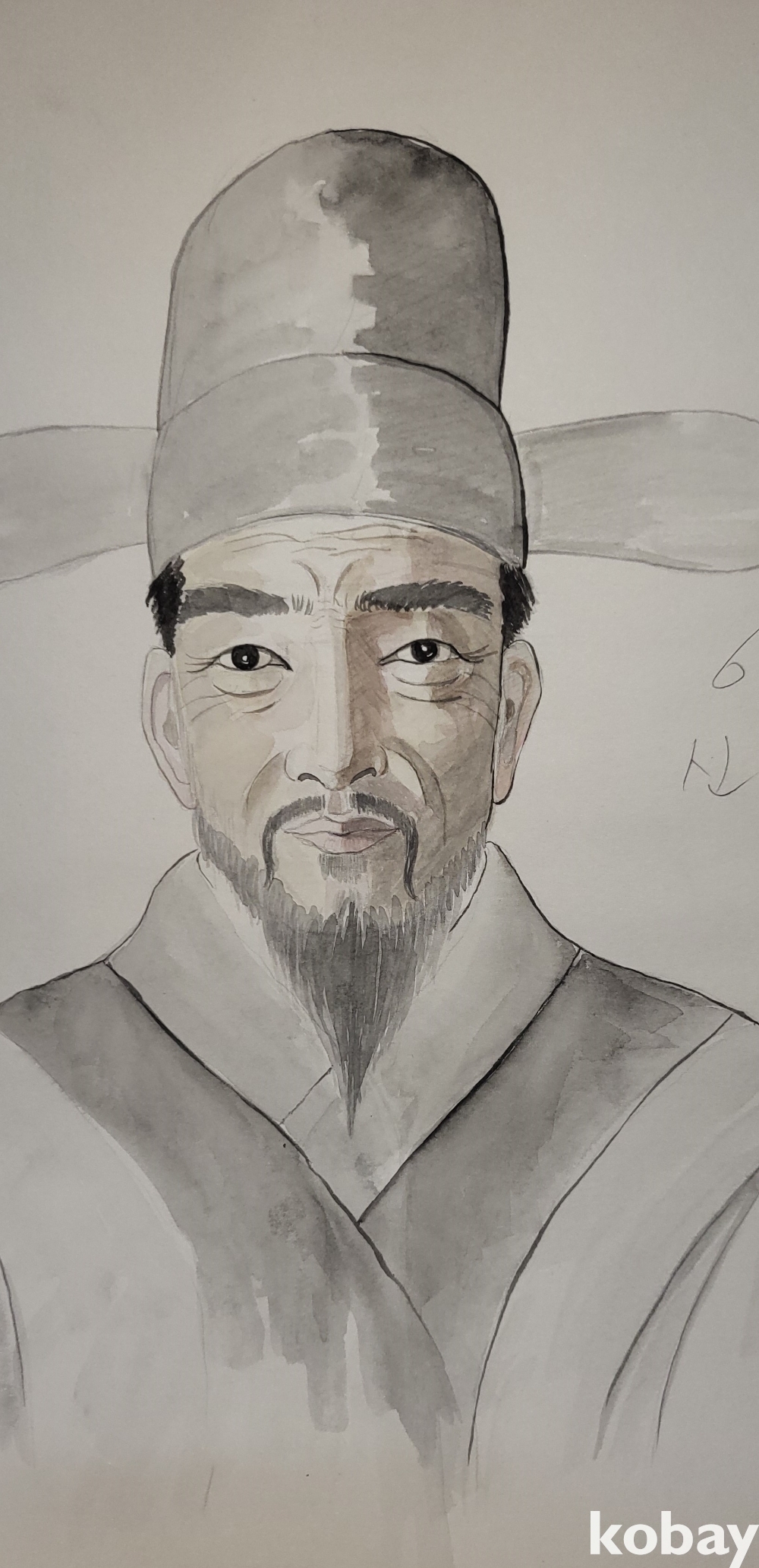 본 초상화에는 작가의 성명은 누락 되었으나 같은 도장만 찍혀있읍니다,