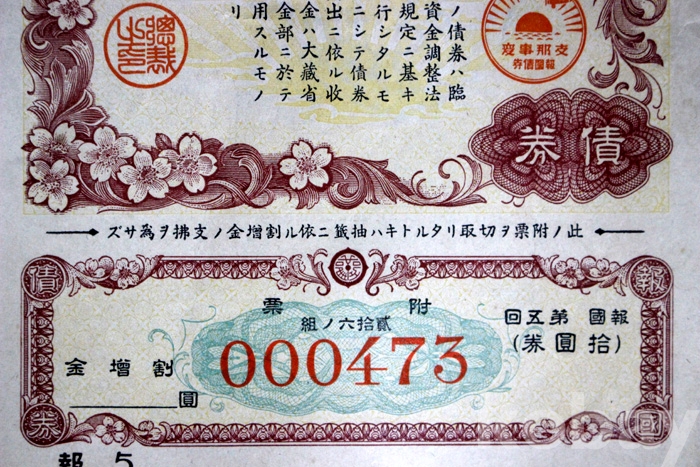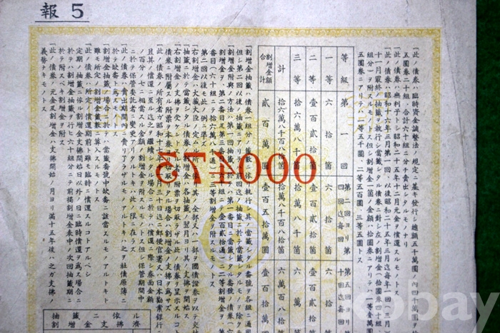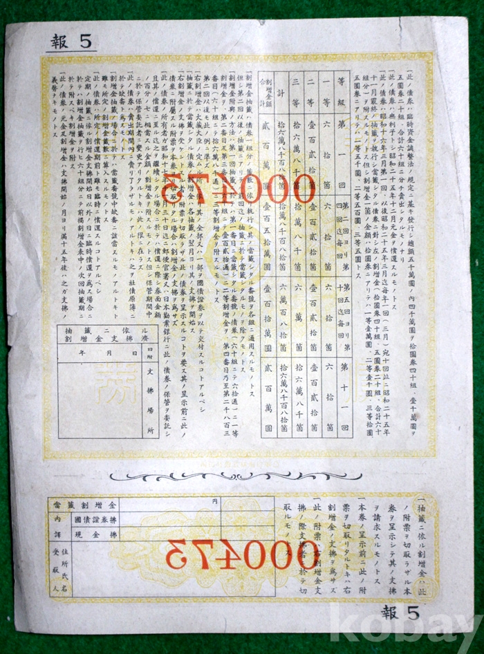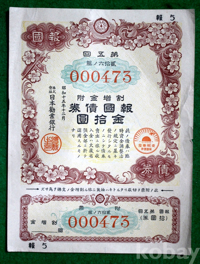 1940년 일본근업은행의 제5회 할증금부 보국채권 : 金 10원