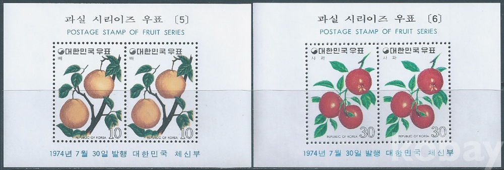 (한국시트-728)1974년과실시리즈제3집시트2종(미사용제)-MNH, VF