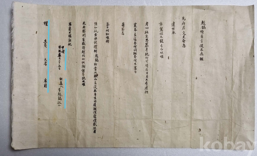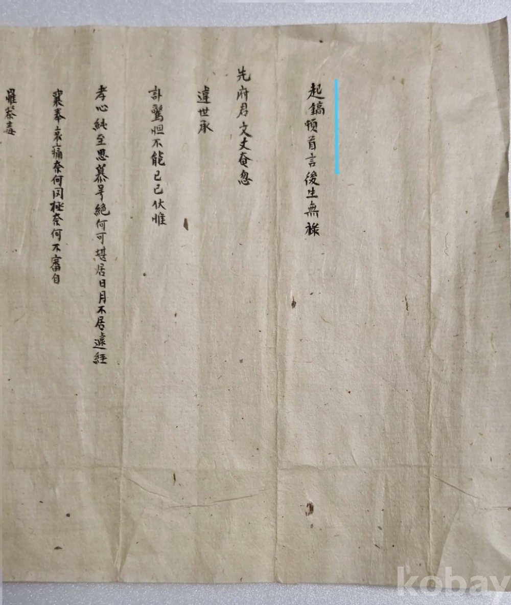 상(喪)을 당한 권 생원(權生員)에게 올린 간찰.