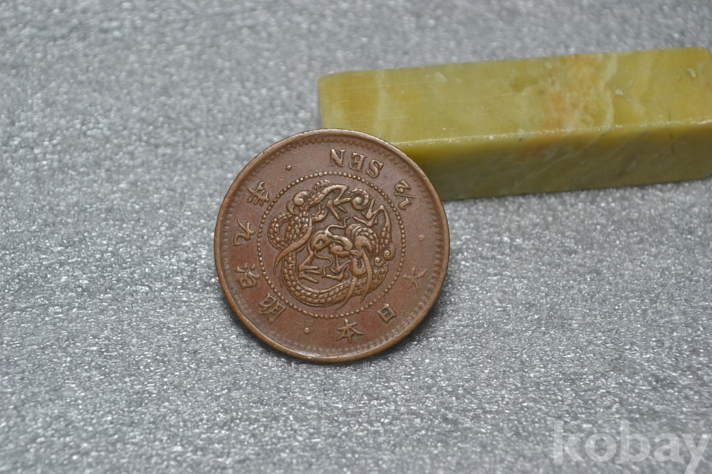 " 도안문양 보존상태가 좋은~ 극미품~ 귀한 초기 용 반전 명치9년 ".. " 용 반전 청동화 ".. 100년 넘는 오래된 명치9년도(1876년) 일본 용반전 청동화 / 도안문양 좋은 보존상태
