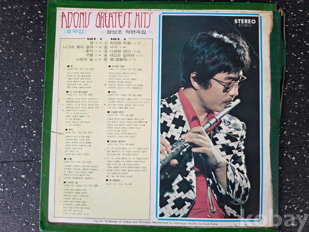 | 자켓상태 | G : 눈에 띄는 손상, 테이프, 필기 존재 | 음반상태 | VG : 생활 기스 다수, 가벼운 노이즈 존재 | 발매정보 | 초반 | 가사지여부 | 무 |