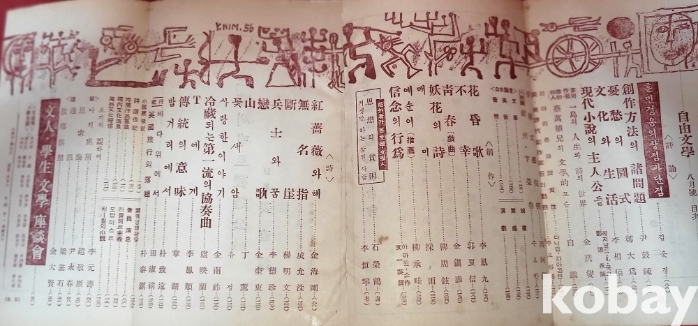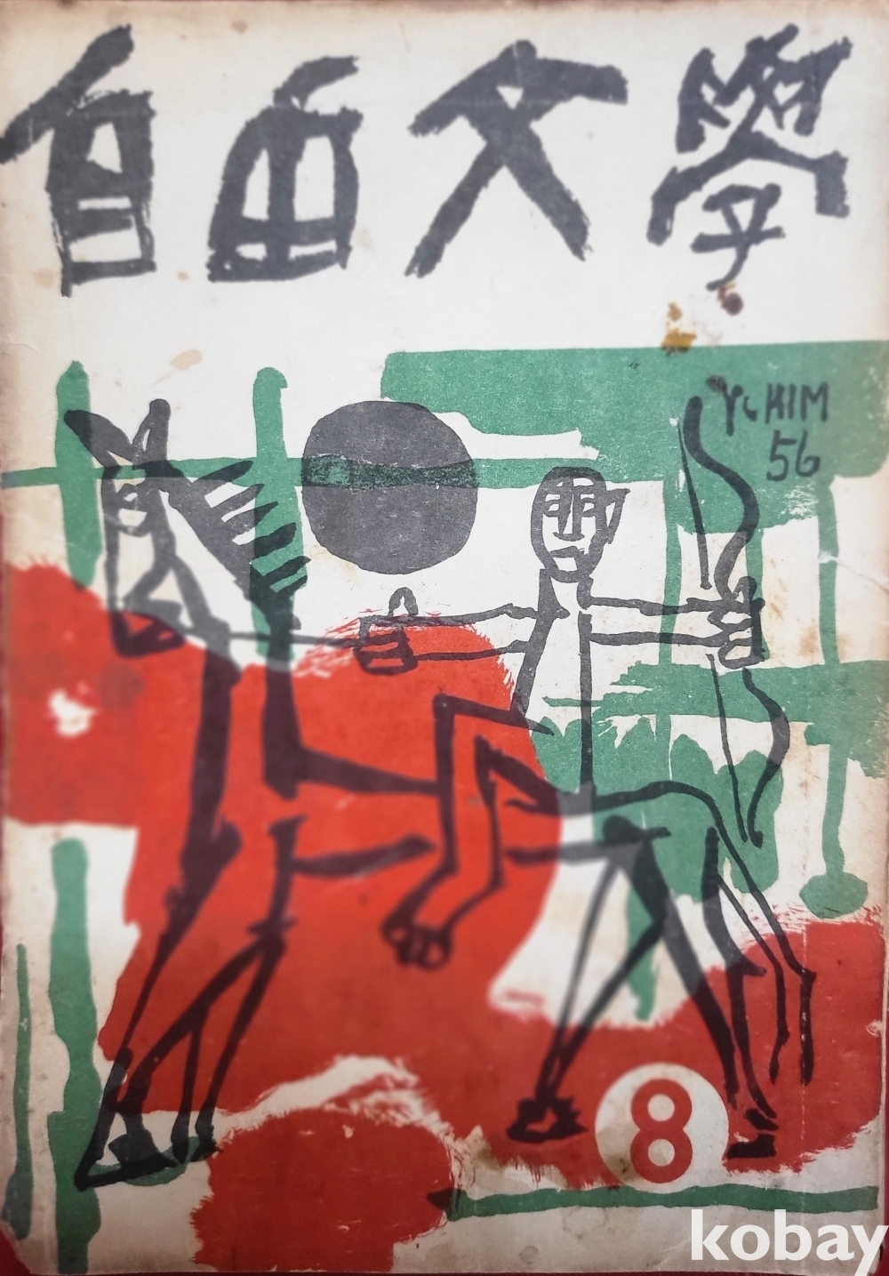 화가 김영주 표지화 그림이 함께하는 "자유뮨학" 1956년 발행입니다,