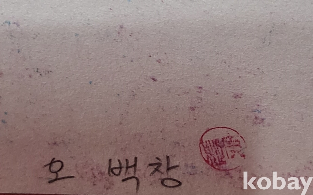 #### 뒷면에는 작가의 도장 사인이 보임니다,