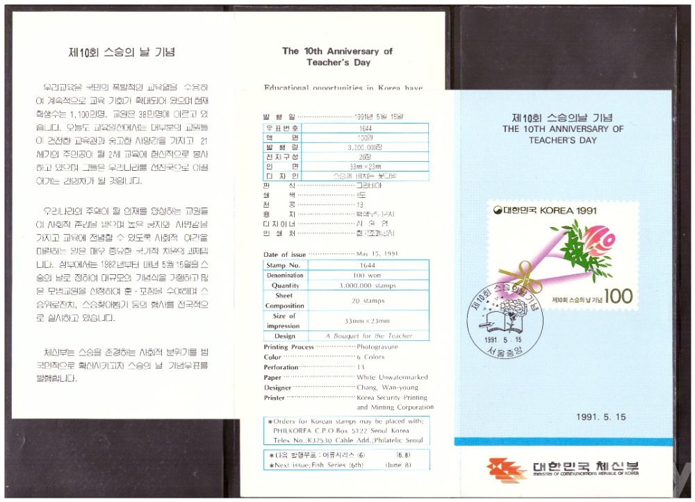 (안내카드) 1991.5.15 제10회 스승의 날 (접지않음)