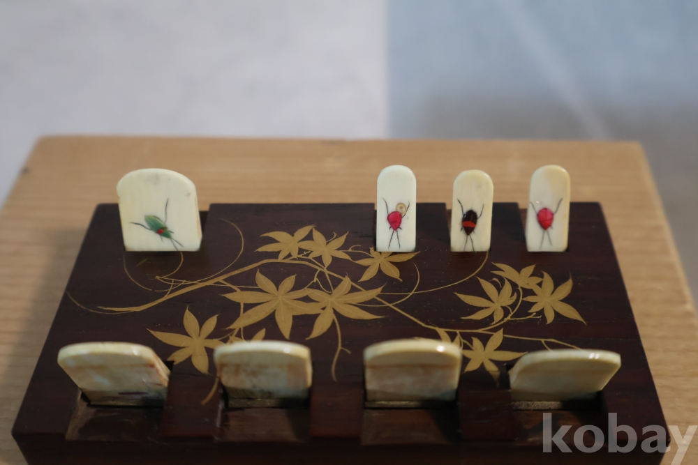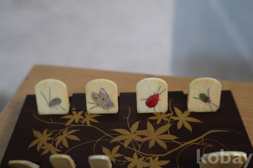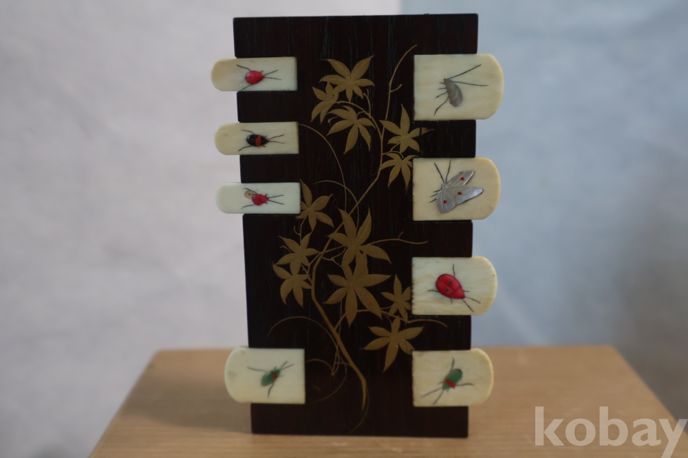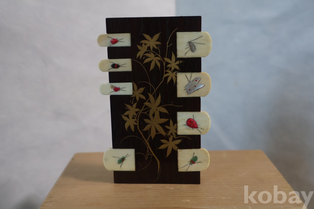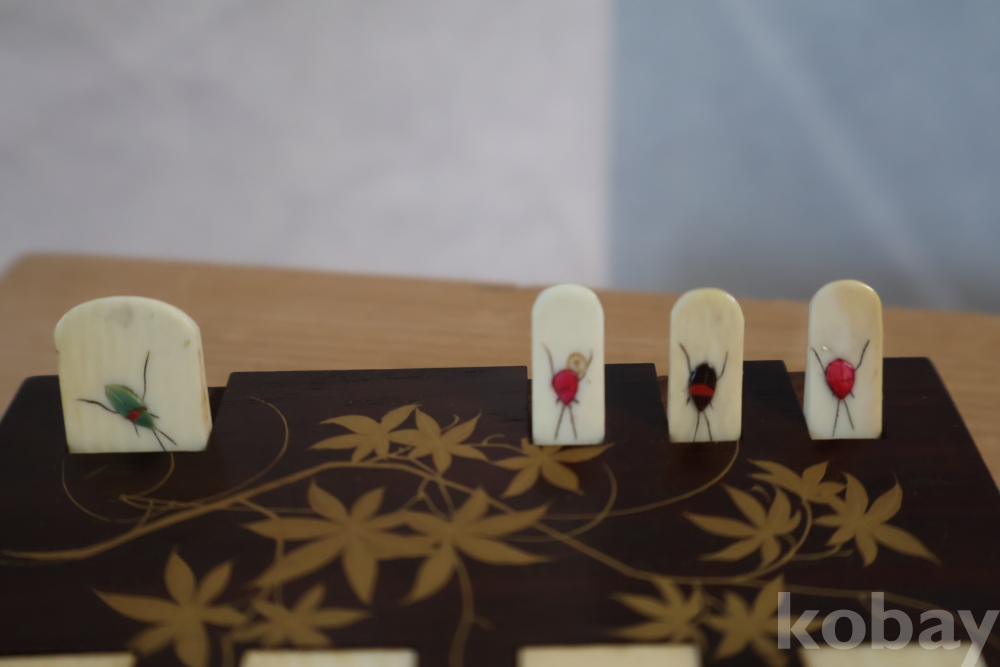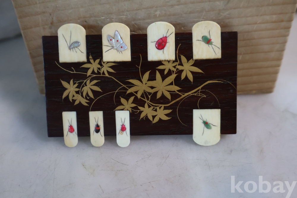 칠기 된 판 위에 곤충으로 디자인한 명치기의 일본 최고급 게임?카운더임니다 일본 고유의 게임을 위한 도구로 알고 있는 명품 임니다정교 섬세한 일급 고미술 임니다 네이버에 시바야마 참조 하세요 Japane ANTIQUE LACQUER & BONE WHIST CARDS GAME COUNTER JAPANESE SHIBAYAMA