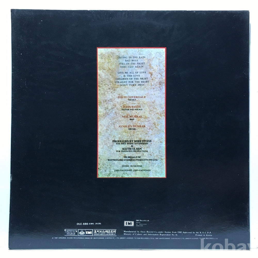 LP 83,840-84 Whitesnake - Whitesnake . 자켓 EX+ 알판 EX 87 년 국내반
