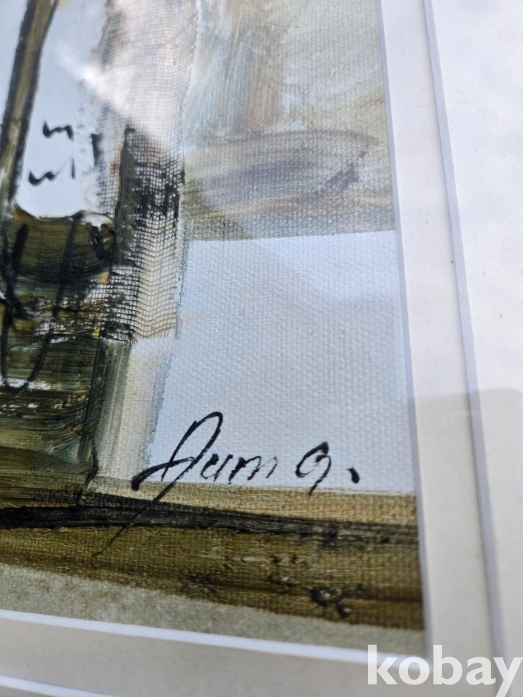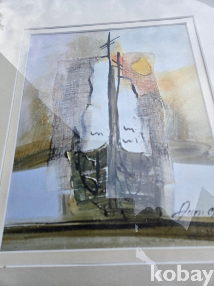 망사 천에 배 표현 유화 액자 입니다.