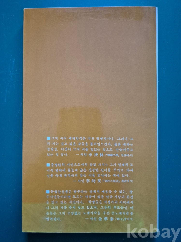 김준태 시인의 跋文. 5부 46편. 12.5X20.8X0.9cm