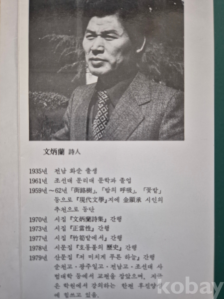 광주고등학교 & 조선대학교 문학부[현재, 국어국문학과] 졸업(文炳蘭).