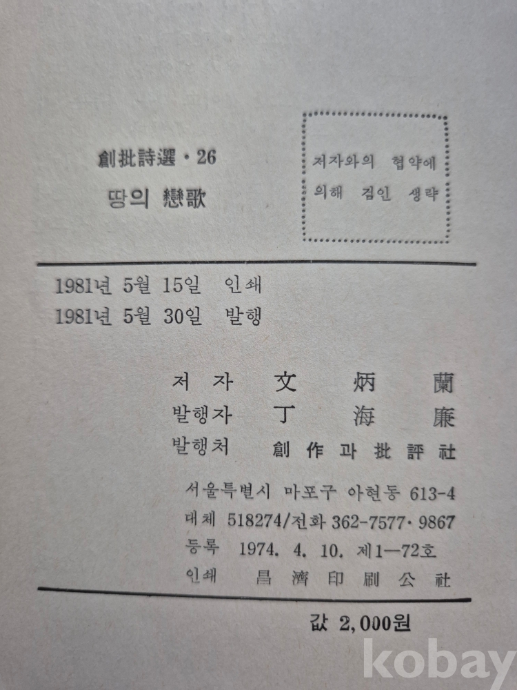 創作과批評社에서 '創批詩選[26]'으로 발행. 149쪽.