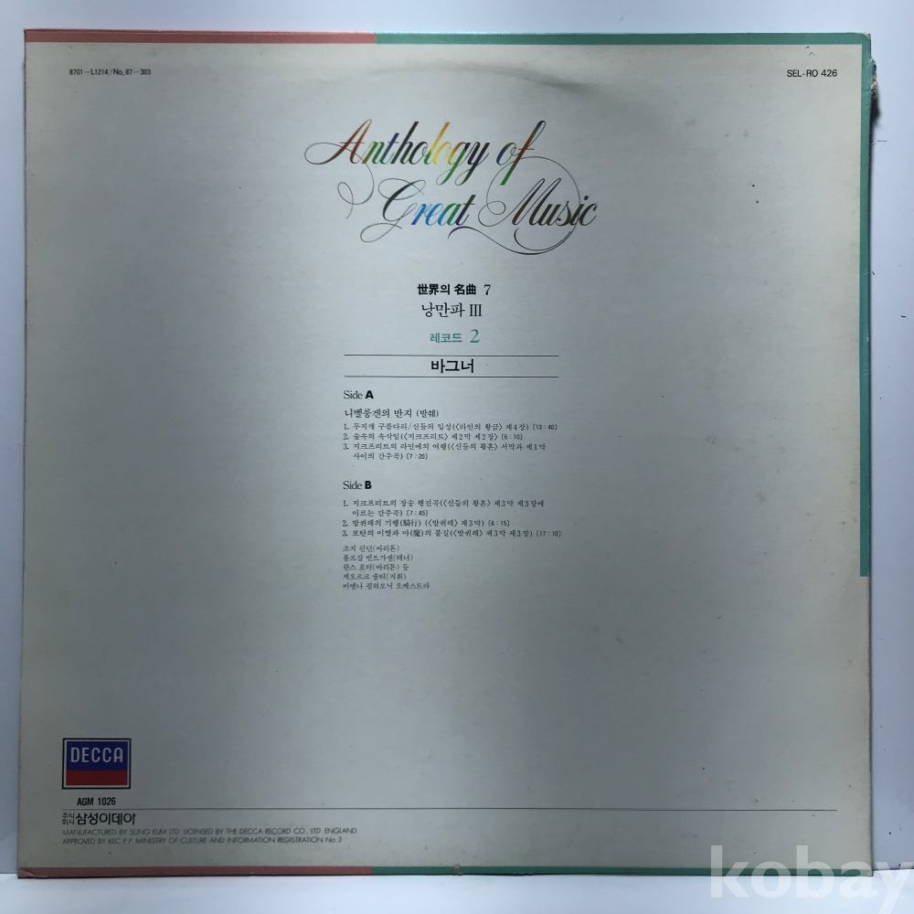 LP 85,000-102 Various Artists - Anthology of Great Music Record 4 (J. STRAUSS) . 자켓 EX 알판 EX+ 87 년 국내반