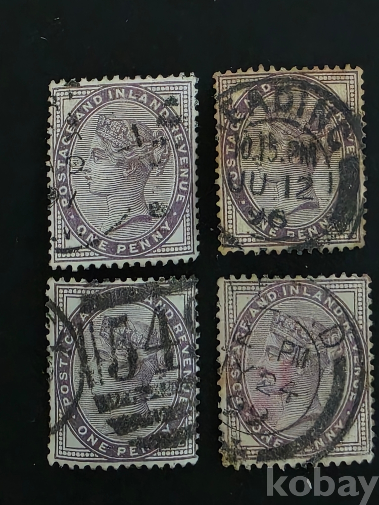 영국 식민지 스트레이츠 세틀먼츠 우표 원페니 우표 4장 일괄 1867년 ~ 발행 우표 클랙식 우표.