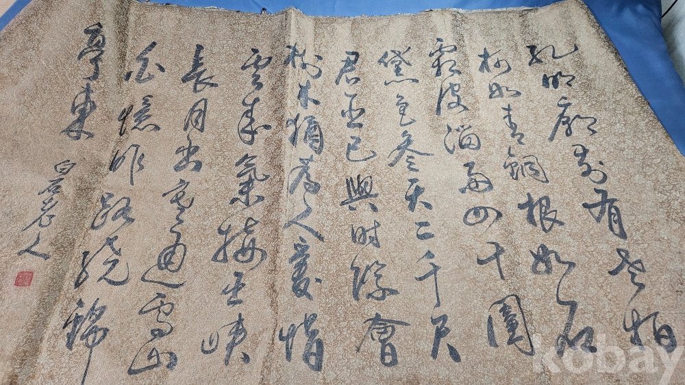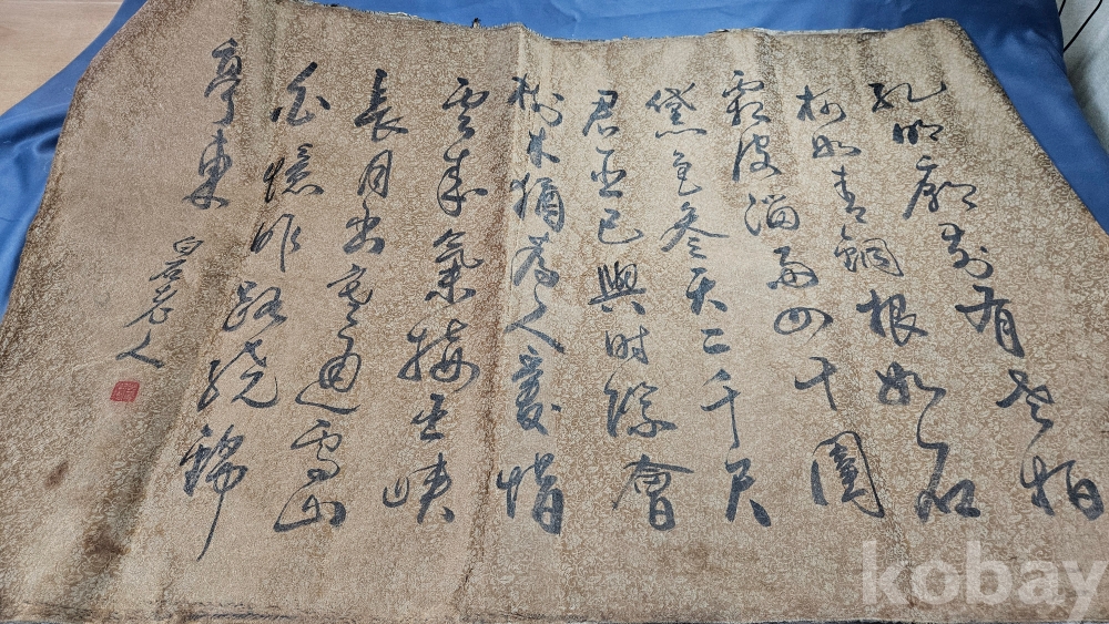 큼직한 천에 쓰여진 글씨 한점 입니다.