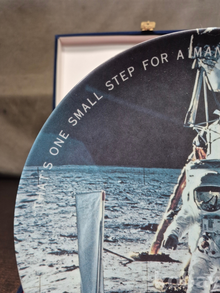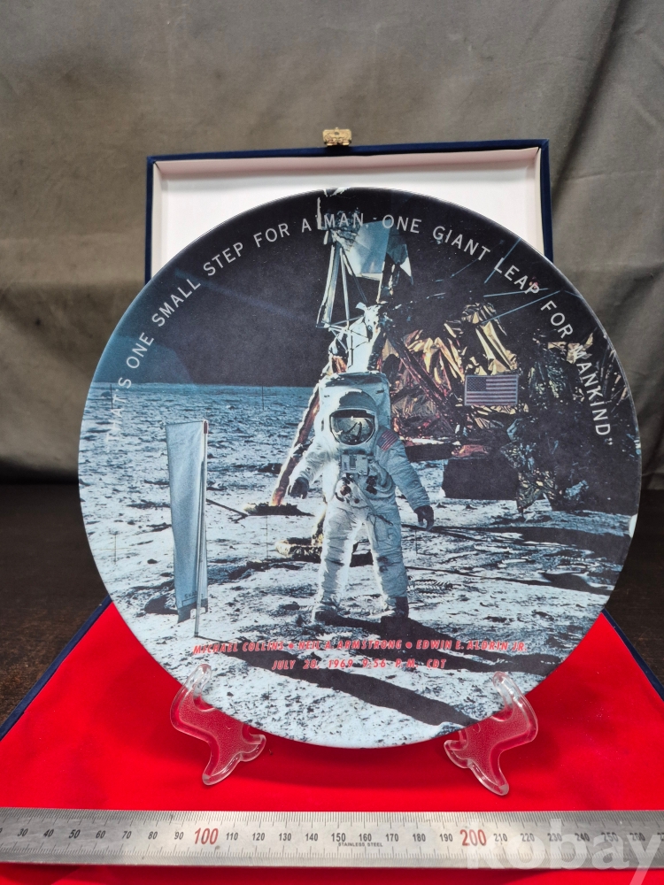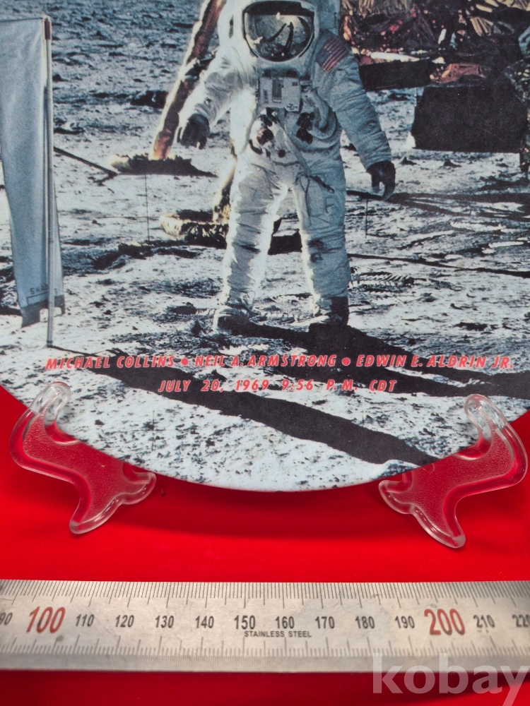 1969년 아폴로 11호 달 착륙기념 접시 마이클 클린스 닐 암스트롱 에드윈 올드린 등 재질 플라스틱 메이드 인 USA 16*26*3
