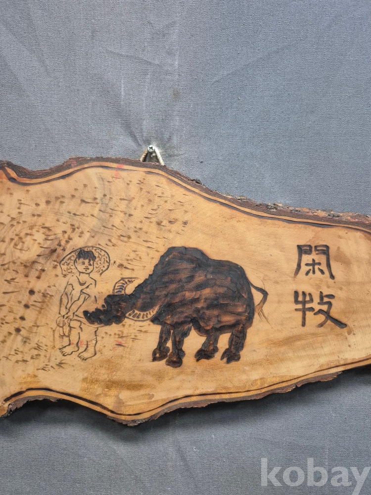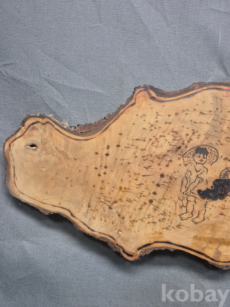 1970년대 원목에 인두화로 그린 벽걸이형 소품 50*17*2