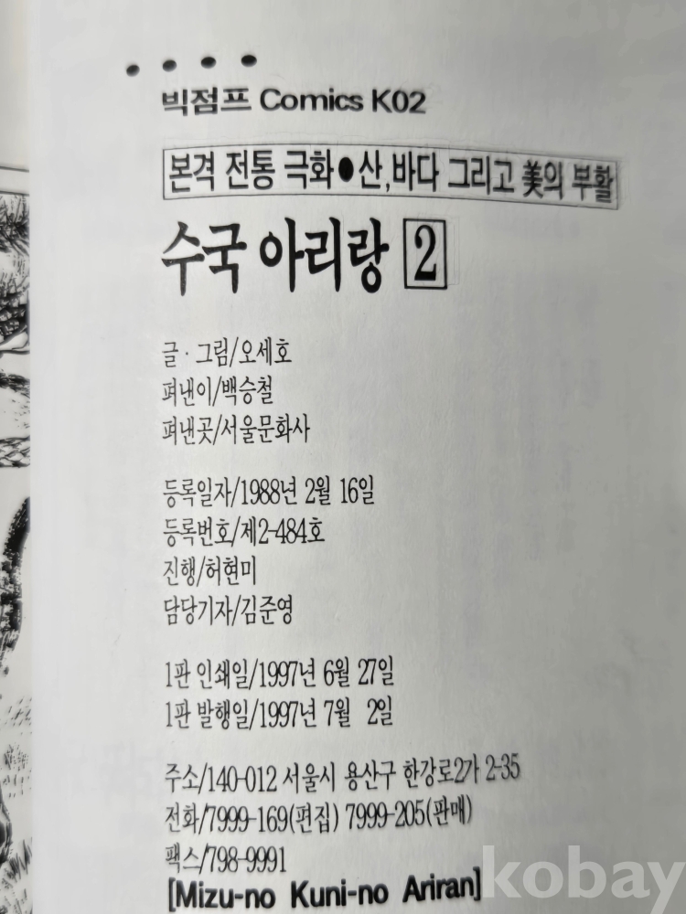 성인만화 == 수국아리랑 == 오세호지음 == 3책 완질