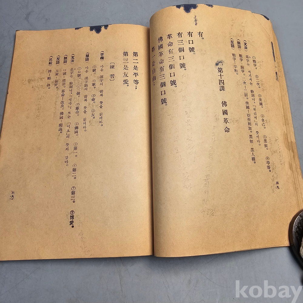 가운데 쯤 두서너장 잉크 물이 번졌습니다.