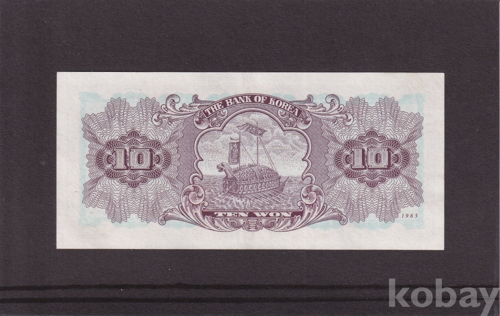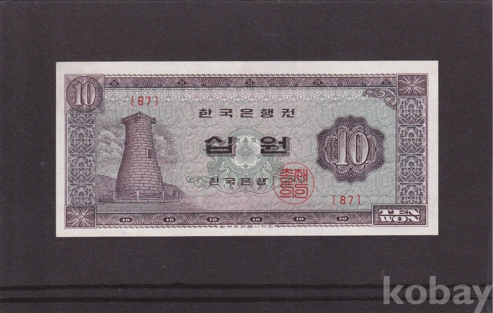 - 한국은행 1965년 유년도 첨성대 십원 판번호 87번 극미(+) 지폐