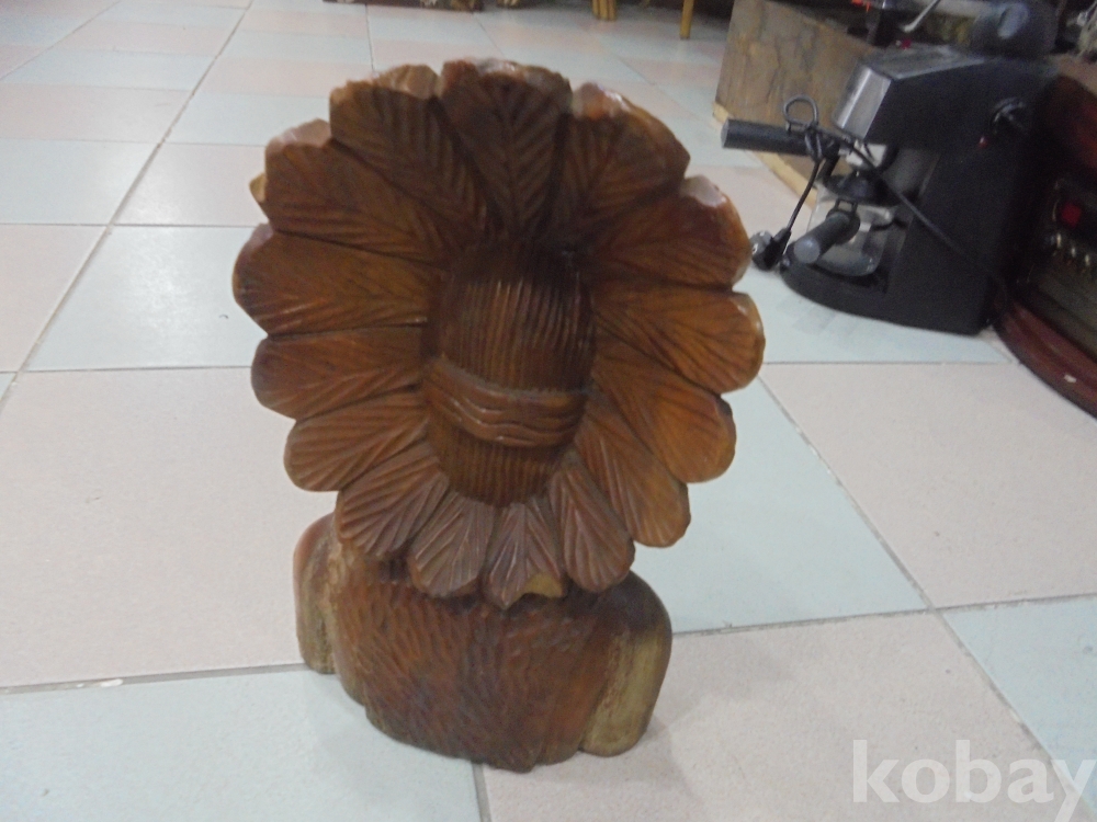 인디안들이 사는마을에 추장을 추대하여 추장에대한품위있는 모습을 조각하여 멋있게 상징한 튼데없는 강한나무로 섬세하게 잘조각한 추장 조각상
