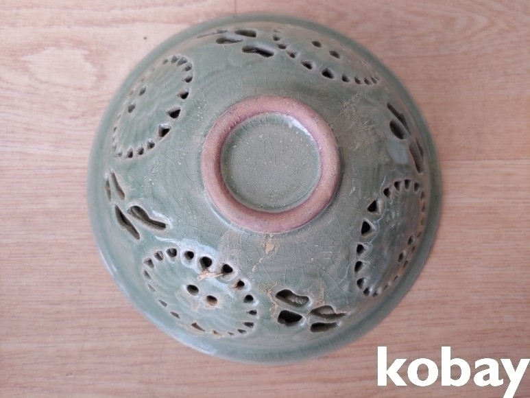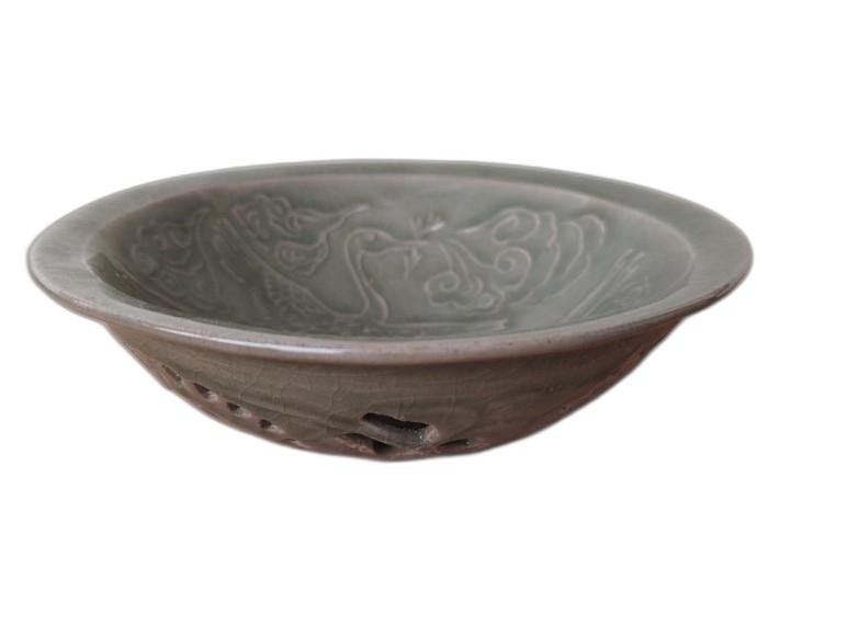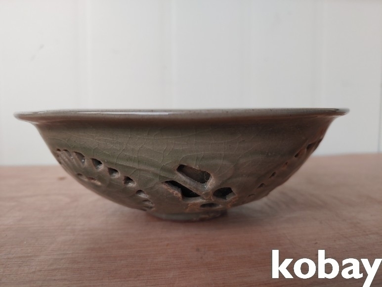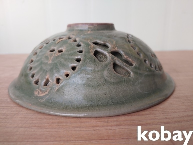 문양이 양각으로 있는 투각 다완 입니다.