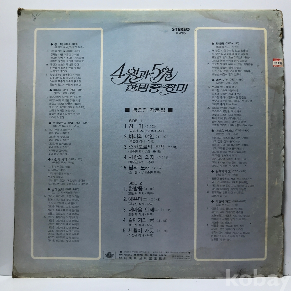 LP 10,720-2 4월과 5월 - 한밤중 / 장미 . 자켓 VG 알판 EX 79 년 국내반